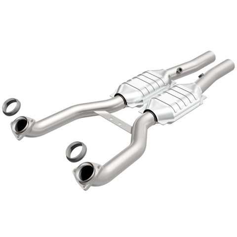Keep the check engine light off with MagnaFlow HM Grade Federal/EPA Compliant Direct-Fit Catalytic Converter 93988. With features including free-flowing mandrel-bent tubing and highly corrosion resistant stainless steel construction, easily install this spun body converter yourself using the proper tools, no cutting or welding required. MagnaFlow's state-of-the-art metrology department uses the latest 3D scanning systems during research and development, so you can be confident that your new part will fit and function like the original equipment. By replicating the OE spun body design, the single laser fusion weld greatly reduces the possibility of a leak, and our compact, low-mass design also allows for greater thermal efficiency.This direct-fit catalytic converter is designed specifically for the 1997-1999 Chevrolet Corvette. Avoid potential exhaust leaks by using the included gaskets to get a proper seal. This replacement part is designed to meet or exceed Federal emissions requirements set forth by the EPA, complying with legal standards for OBDII Federally registered vehicles with Federal/EPA Emission systems.