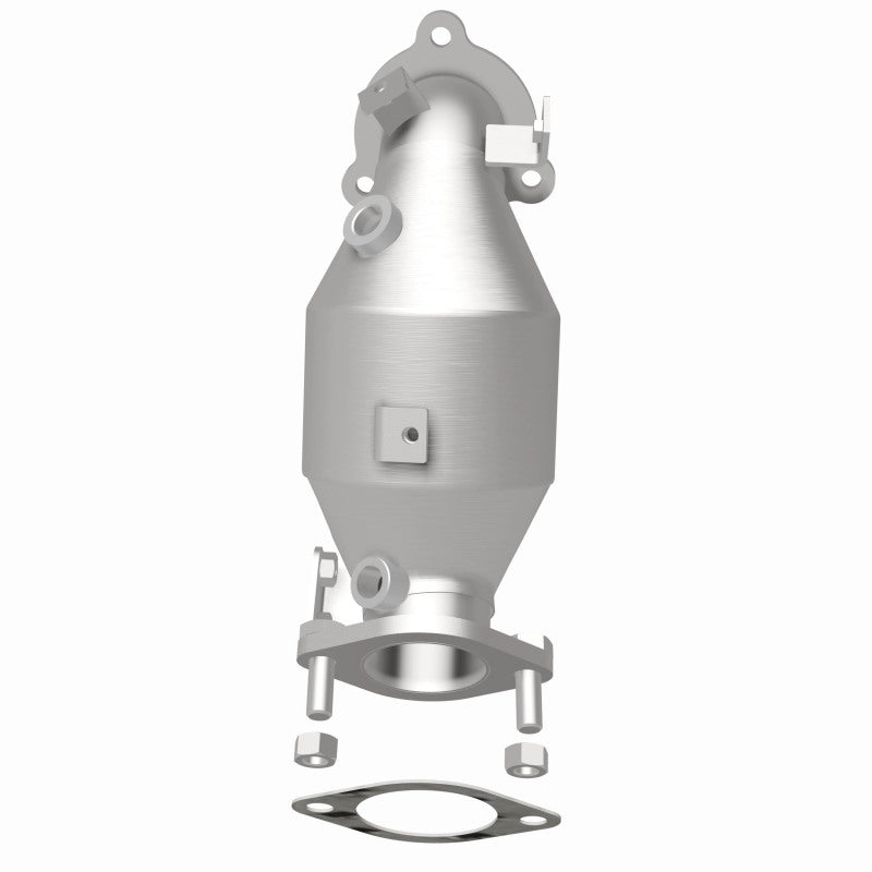 Keep the check engine light off with MagnaFlow OEM Grade Federal/EPA Compliant Direct-Fit Catalytic Converter 49251. With features including free-flowing mandrel-bent tubing and highly corrosion resistant, stainless steel construction, easily install this spun body converter yourself using the proper tools, no cutting or welding required. MagnaFlow's state-of-the-art metrology department uses the latest 3D scanning systems during research and development, so you can be confident that your new part will fit and function like the original equipment. By replicating the OE spun body design, the single laser fusion weld greatly reduces the possibility of a leak, and our compact, low-mass design also allows for greater thermal efficiency.This direct-fit catalytic converter is designed specifically for the 2010-2012 Hyundai Genesis Coupe and interchanges with OE parts 28510-2C490 and 28510-2C450. The included gaskets & hardware reduce the possibility of a leaking seal while avoiding the need to reuse corroded factory parts for installation. This replacement part is designed to meet or exceed Federal emissions requirements set forth by the EPA, complying with legal standards for OBDII Federally registered vehicles with California or Federal/EPA Emission systems.